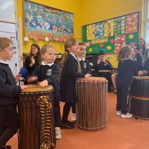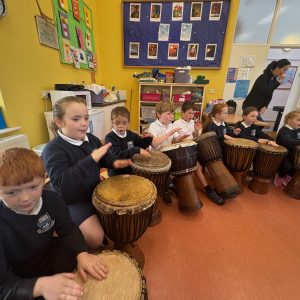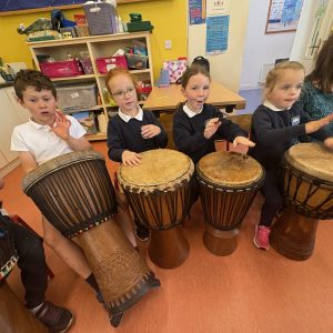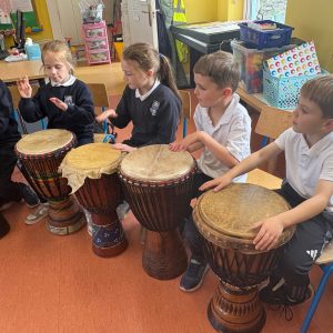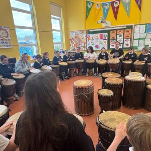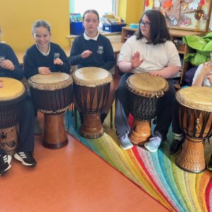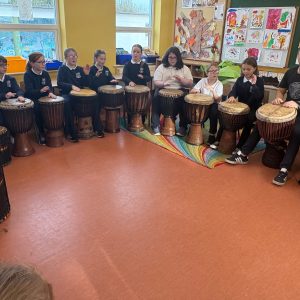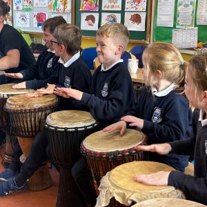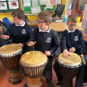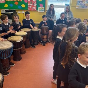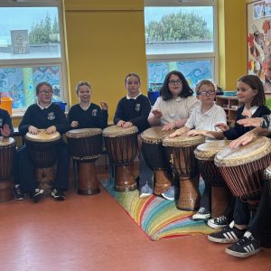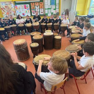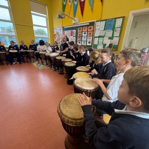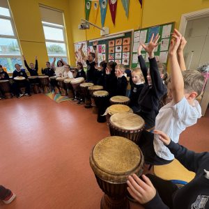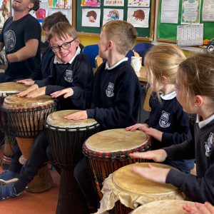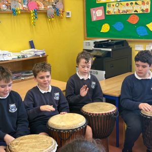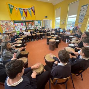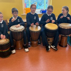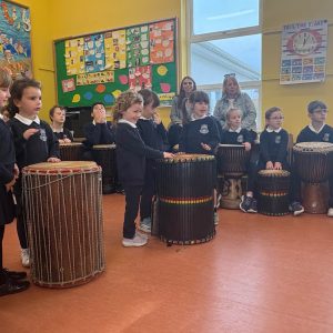 We started out today with a fantastic drumming workshop, brought to us by Barra Ó Flanniagh, there was great noise and energy in the room. Barra was super with the children. Special thanks to #clifdenartsfestival for bringing this wonderful workshop to our school.