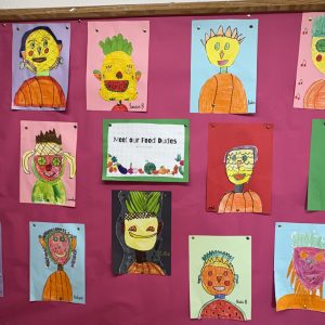 This month, the whole school have been doing The Food Dudes Program. The children have been trying a variety of healthy fruit and veg. They are learning about the importance of eating healthy and have done some lovely art in both classrooms. Well done to everyone for their great work on this important topic!