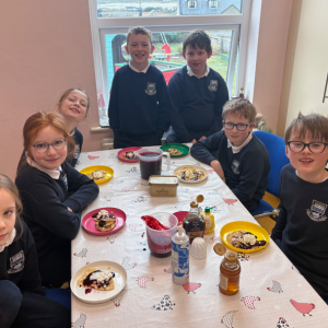 Yesterday the whole school got to try some pancake flipping and ate some delicious pancakes with Ms. Griffin and Martina. We even had lovely blackberry compote that was made with the blackberries the children gathered earlier in the year. The pancakes were delicious!