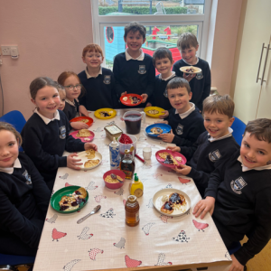 Yesterday the whole school got to try some pancake flipping and ate some delicious pancakes with Ms. Griffin and Martina. We even had lovely blackberry compote that was made with the blackberries the children gathered earlier in the year. The pancakes were delicious!